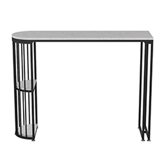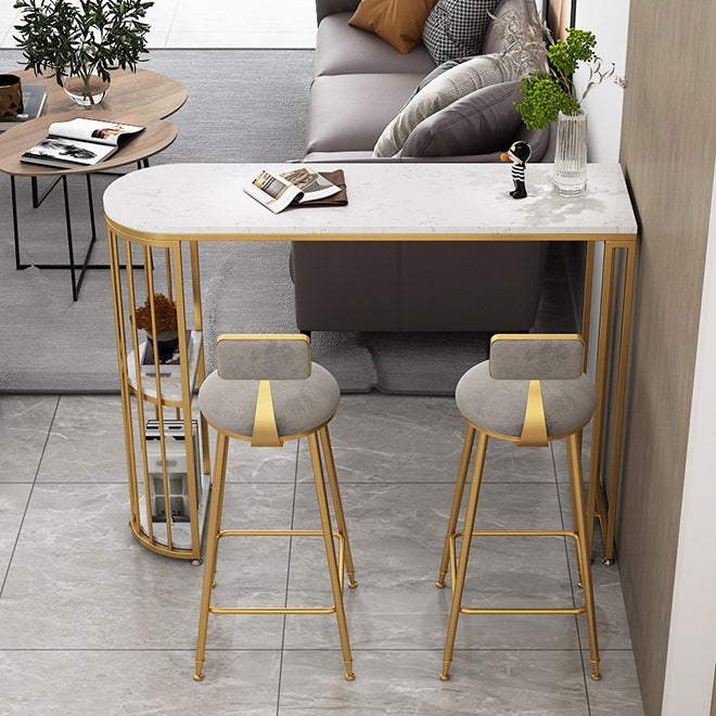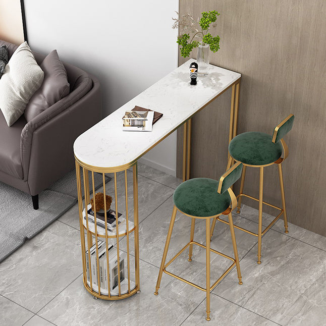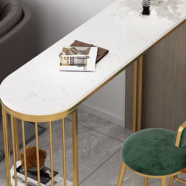 White Stone Bar Dining Table Contemporary Bar Table with Sled Base