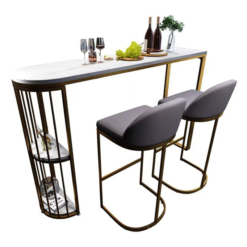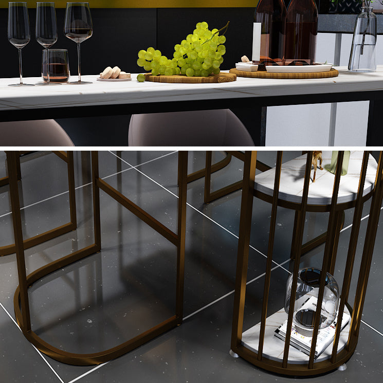 White Stone Bar Dining Table Industrial Bar Dining Table with Sled Base