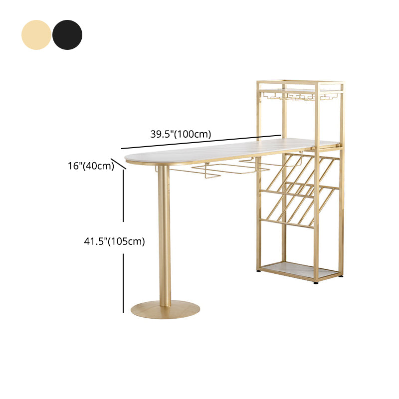 White Stone Bar Table Contemporary Bar Dining Table with Sled Base