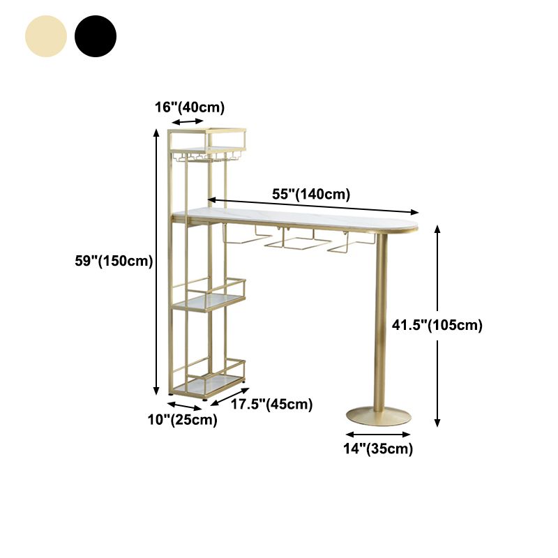 White Stone Indoor Glam Bar Dining Table Iron Double Pedestal Bistro Table with Wine Rack