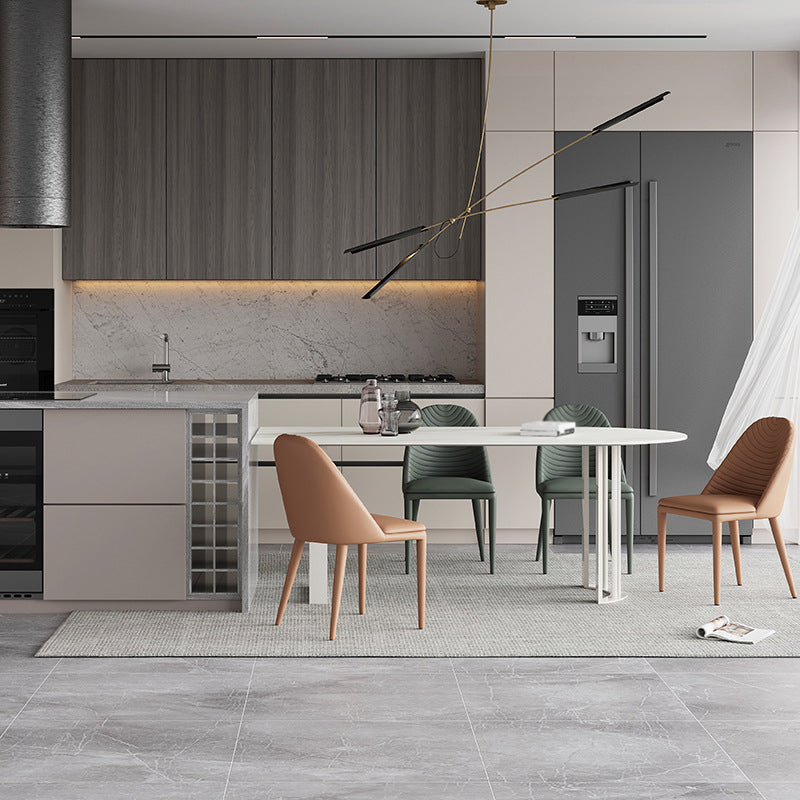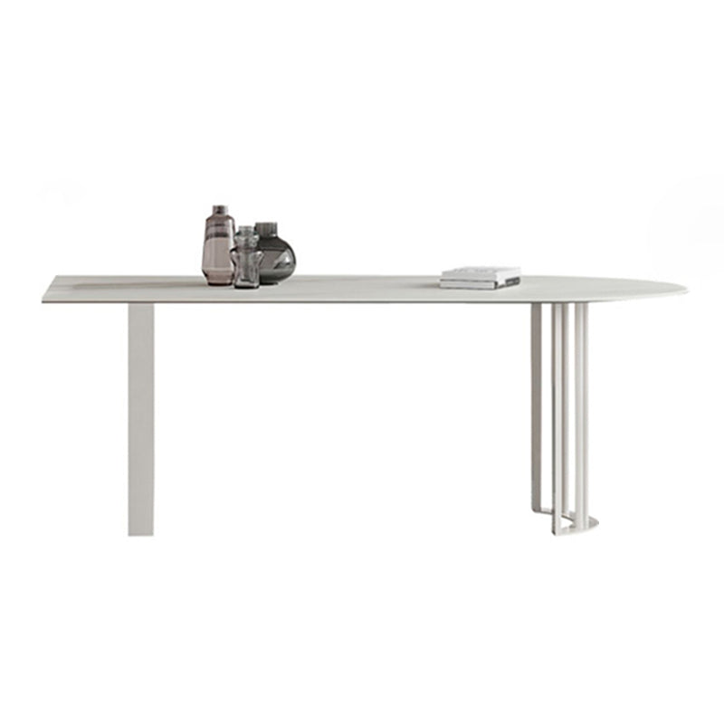 White Stone Top Dining Table Modern Dining Table with Sled Base