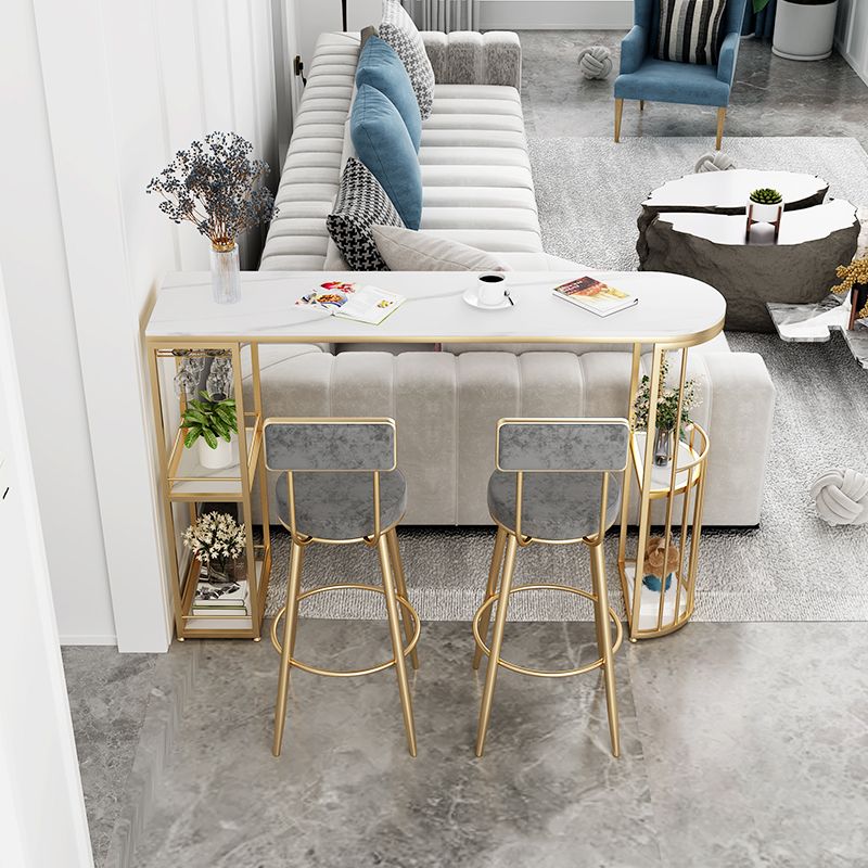 White Stone Top Free Form Bar Table with Metal Frame for Home