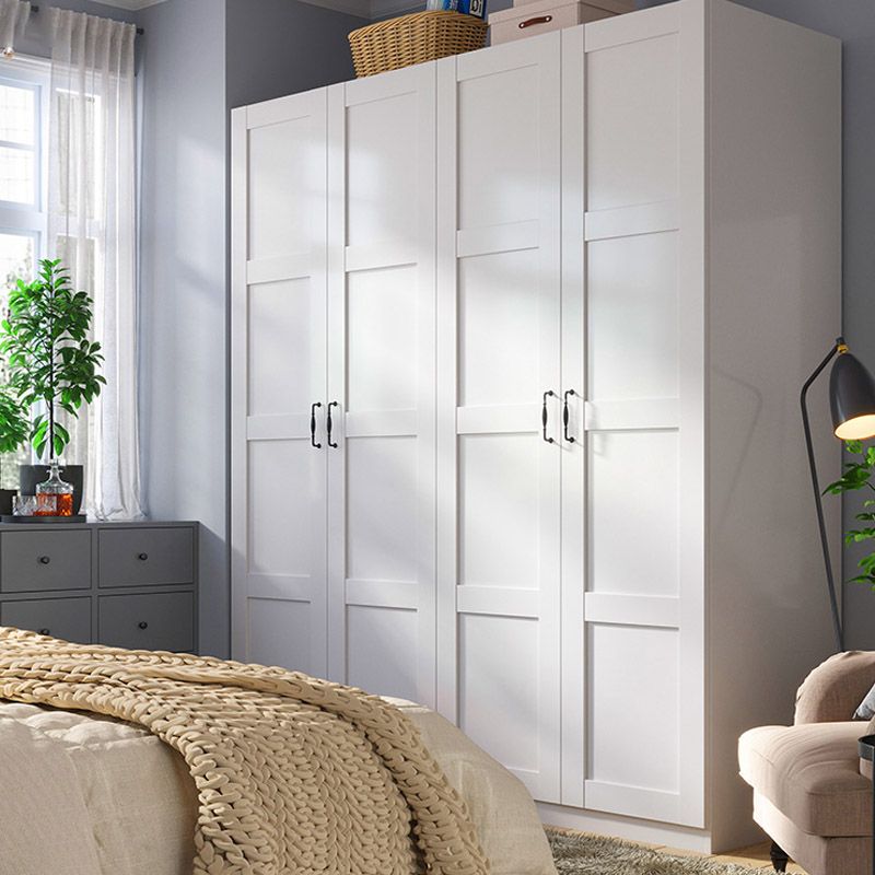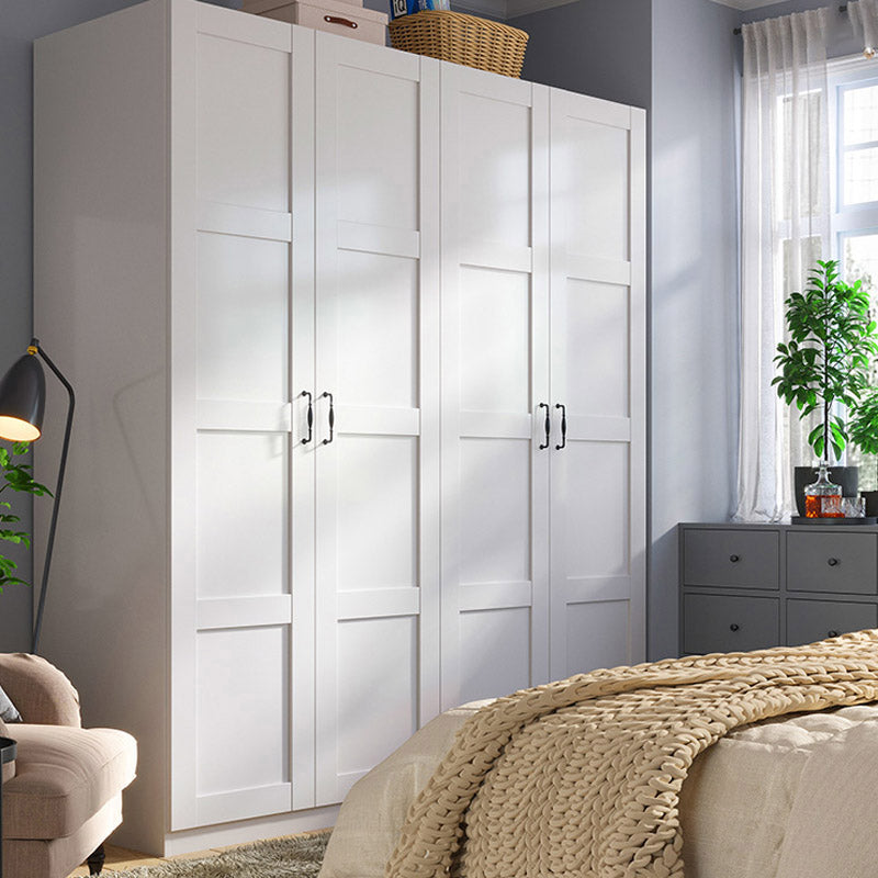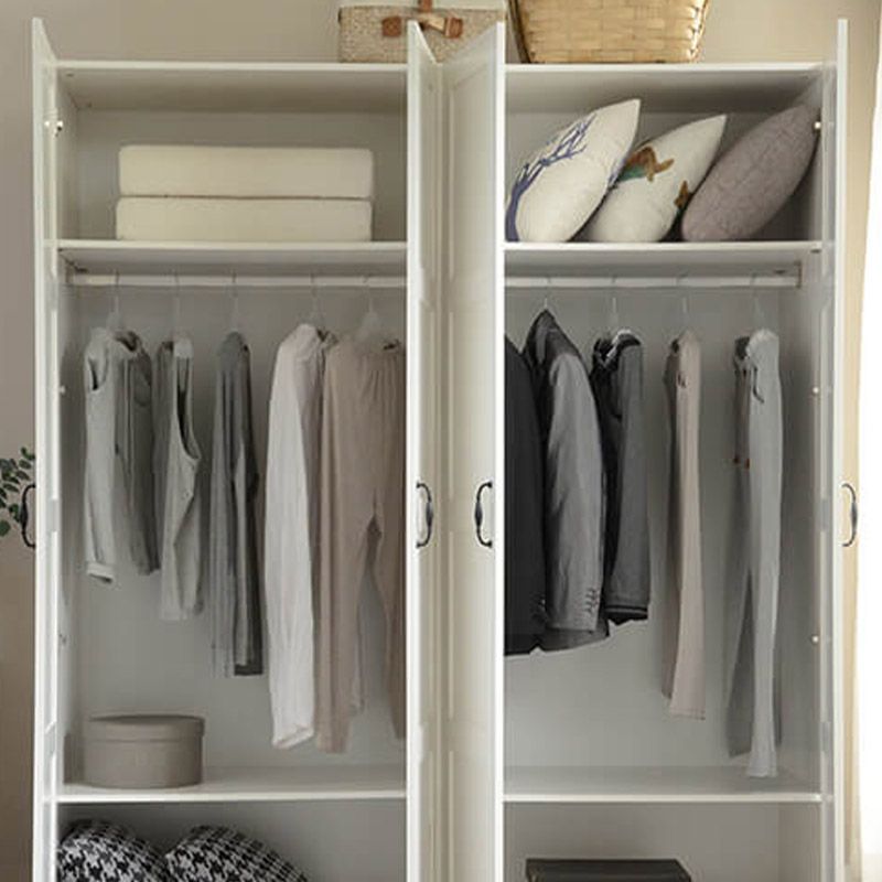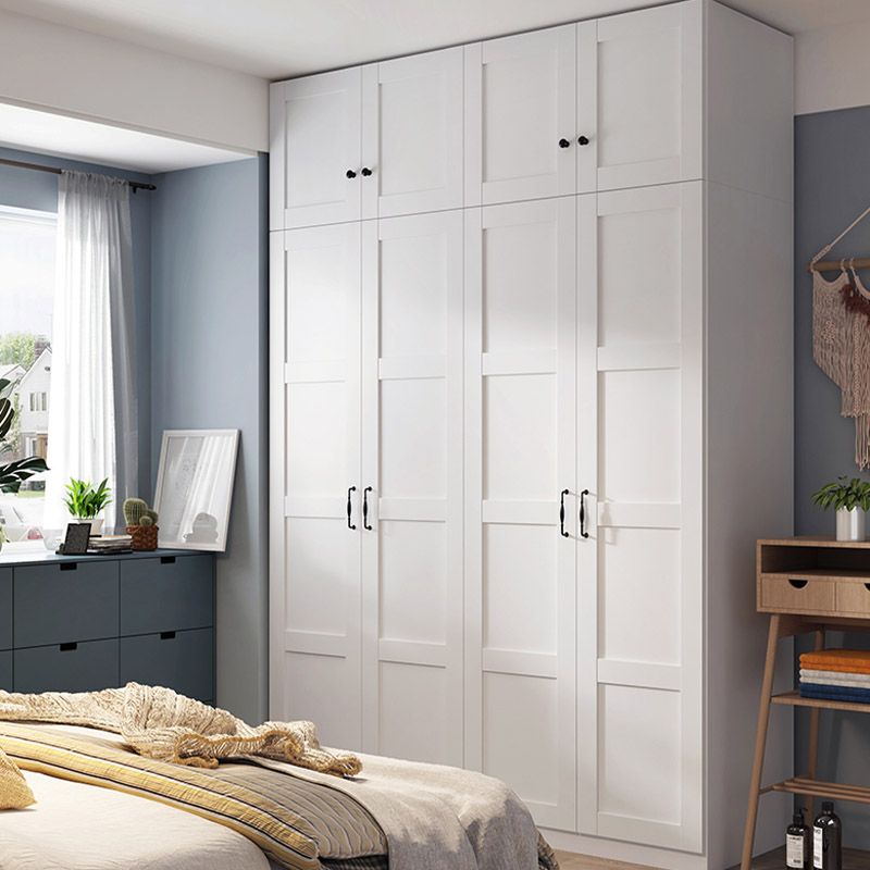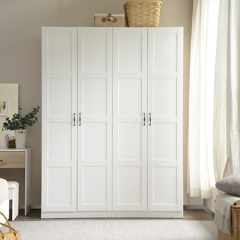 White Wardrobe Closet with Garment Rod Manufactured Wood Youth Armoire
