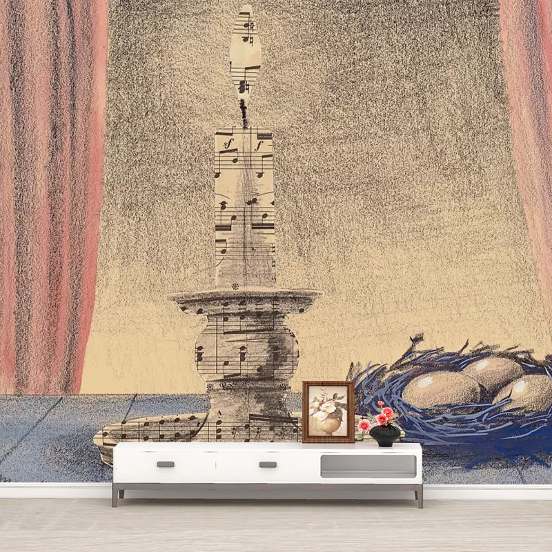 Whole Still Life Wall Mural Decal Surrealistic Table Lamp and Eggs Wall Art in Brown