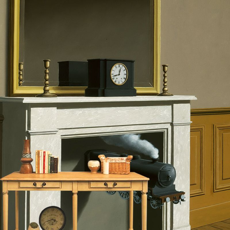 Whole Surrealism Style Wall Murals Yellow-Brown Steam Train Break out of Fireplace Wall Decor, Custom Print