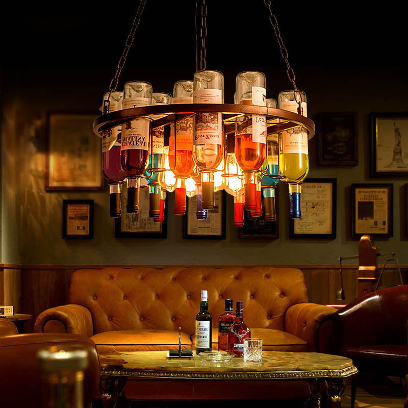 Wine Bottle Glass Chandelier Pendant Light Industrial Bar Chandelier Lighting