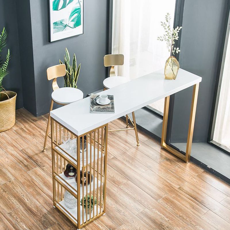 Wood Bar Dining Table Traditional Luxury Rectangle Bar Table with Sled Base in Gold