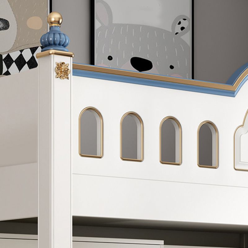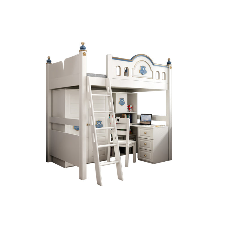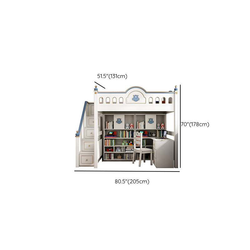 Wood Loft Bed with Guardrail White Kids Bed with Built-In Ladder/Stairway