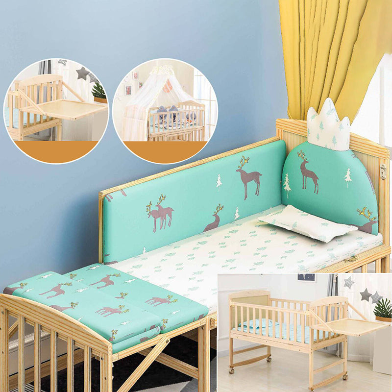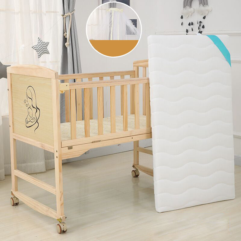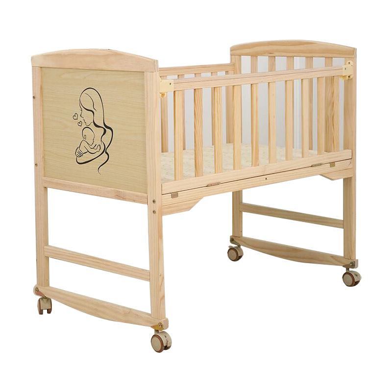Wood Rocking Baby Crib Cradle Rectangle with 4 Wheels Cradle