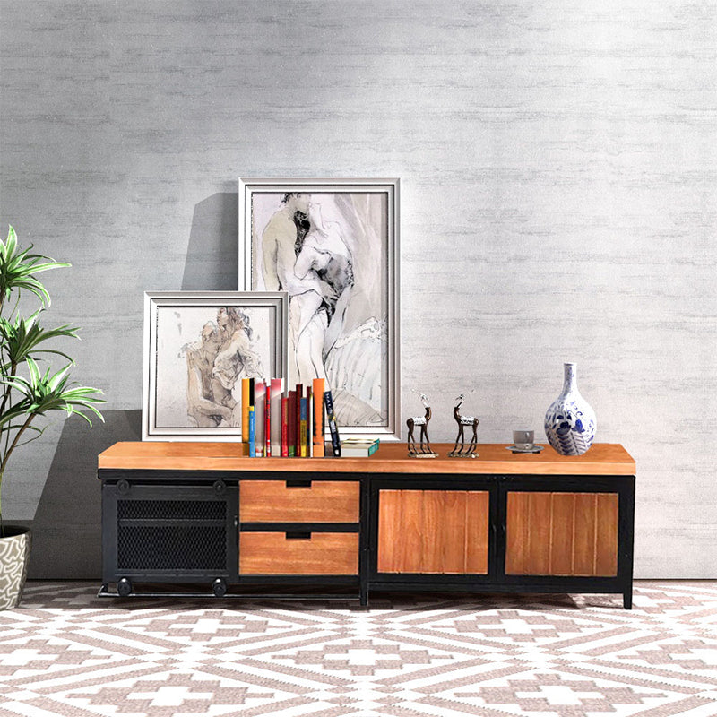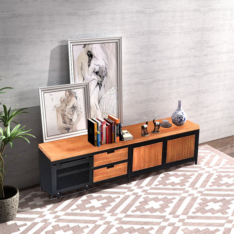 Wooden and Metal TV Cabinet Industrial Style Retro Home TV Stand Console