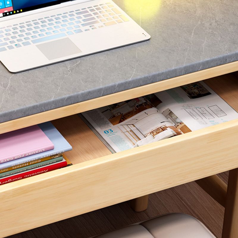 Wooden Desk and Chair Kids Writing Desk with Drawer 29.52" H Stone Top Child Desk