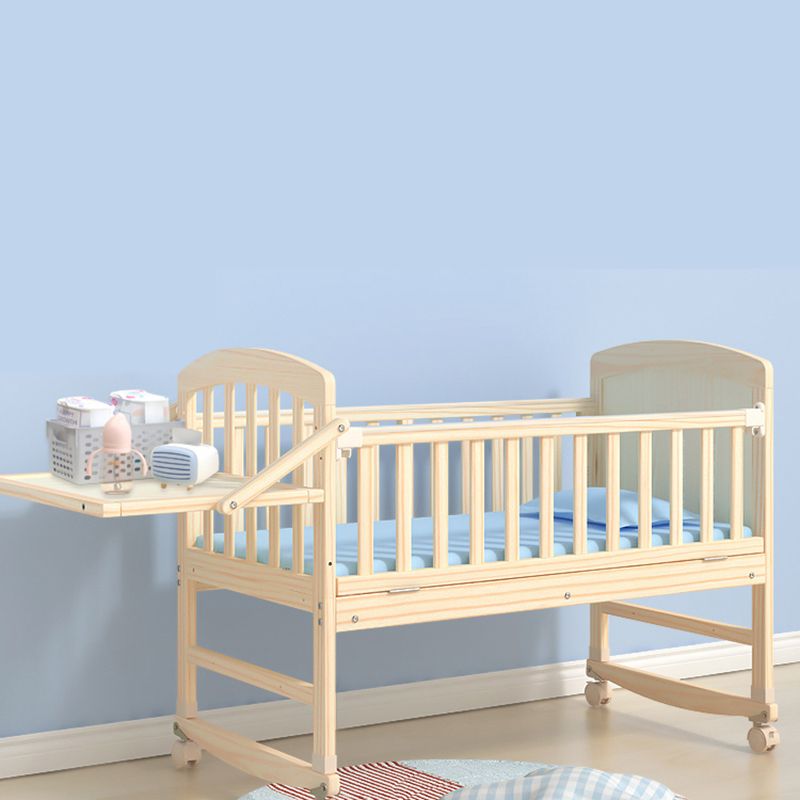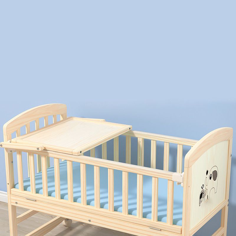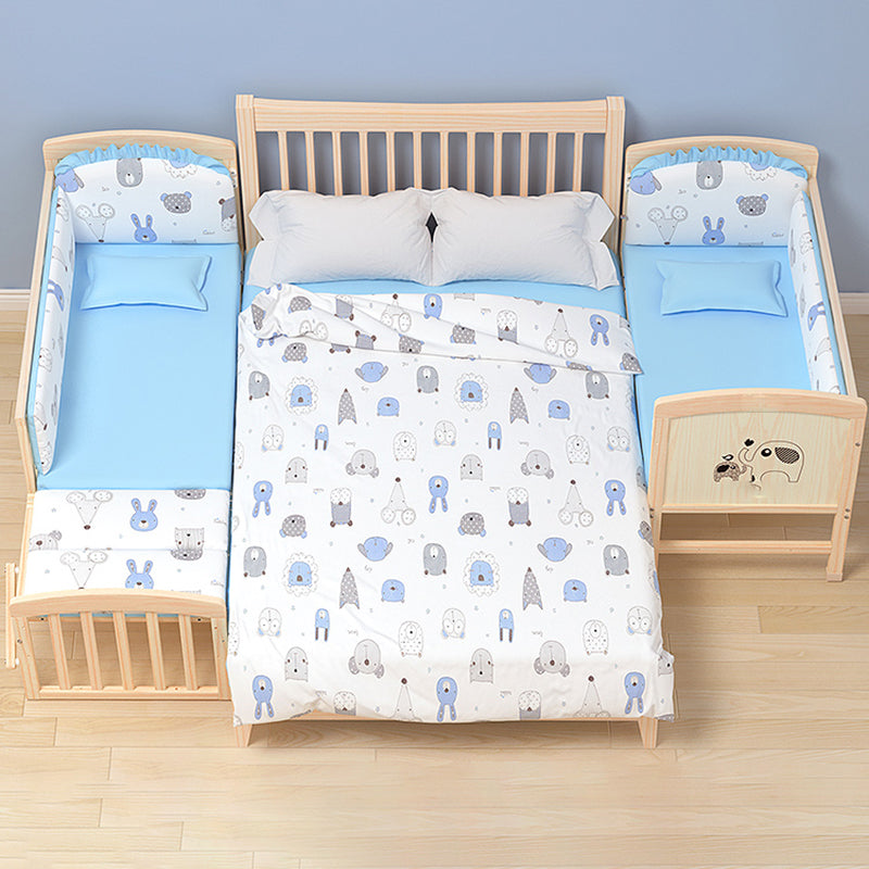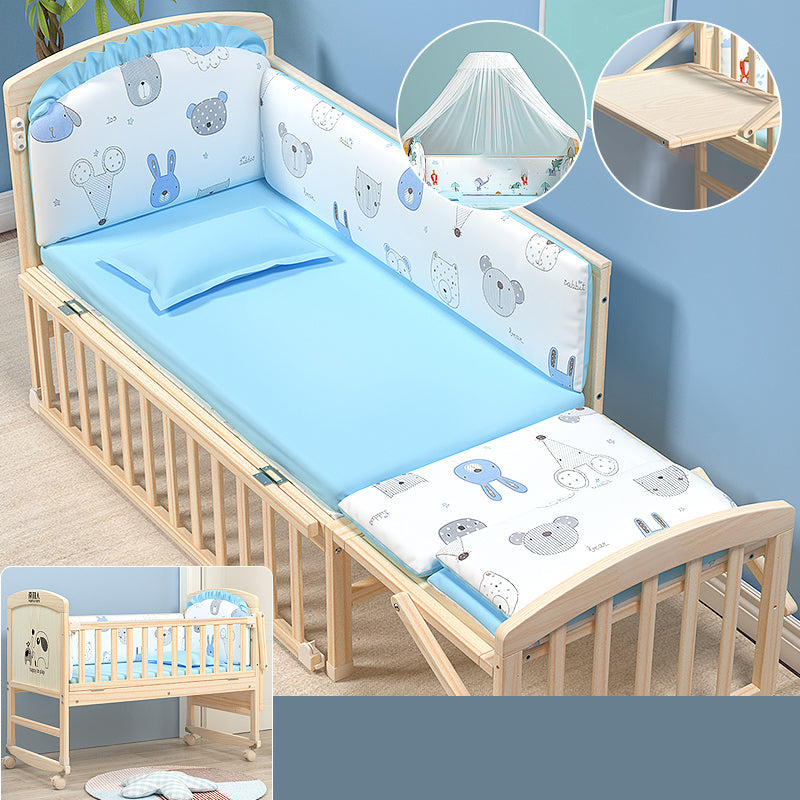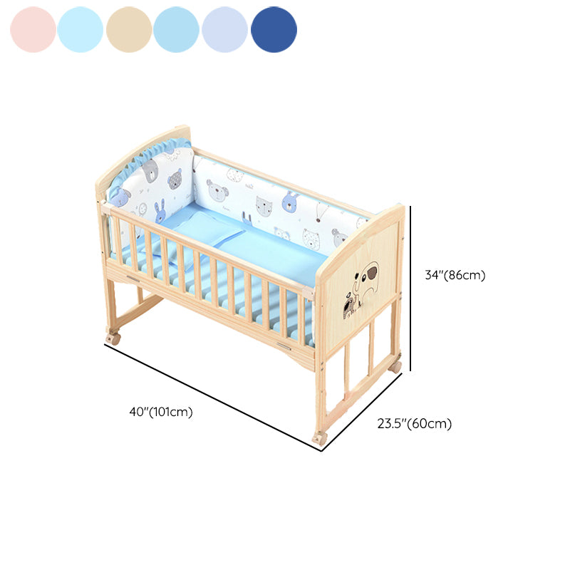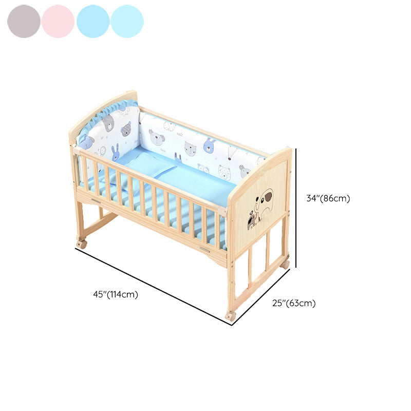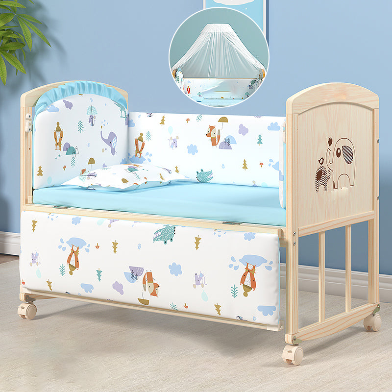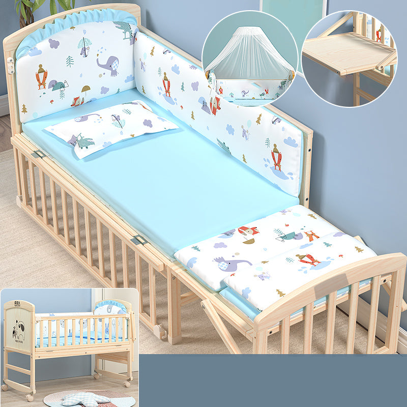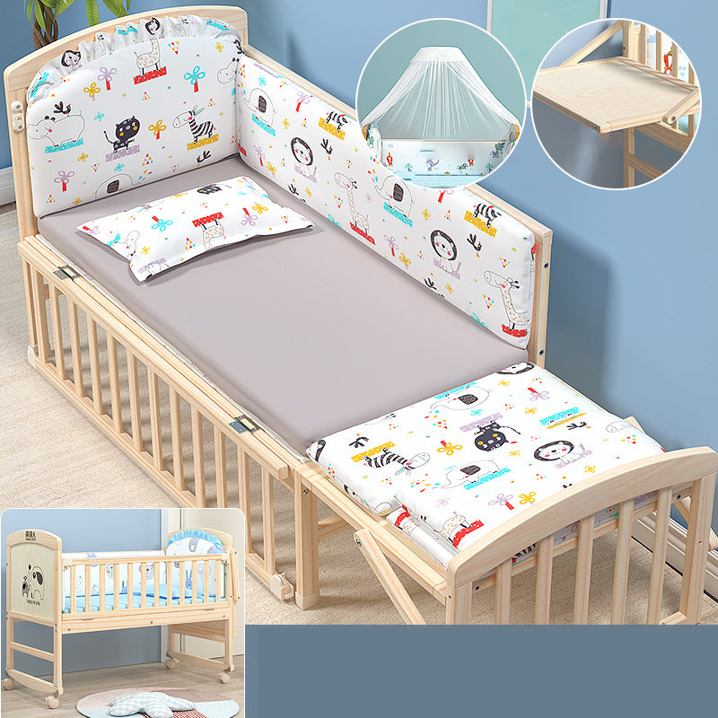 Wooden Modern Nursery Bed Animal Print Baby Crib with Wheels