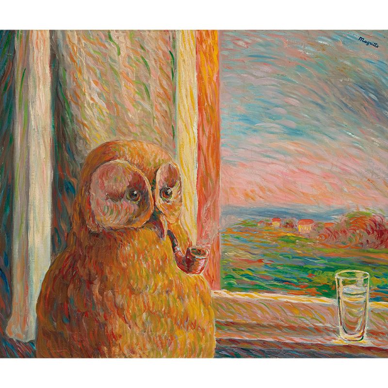 Yellow-Brown Surreal Wall Murals Whole Owl Smoking Pipe Painting Wall Art for Home