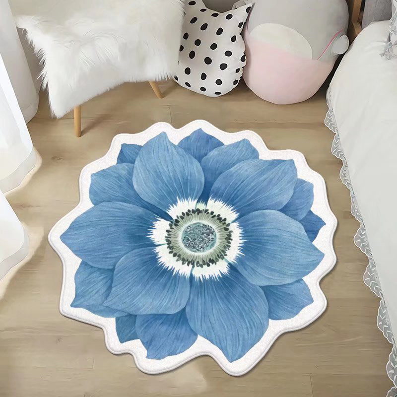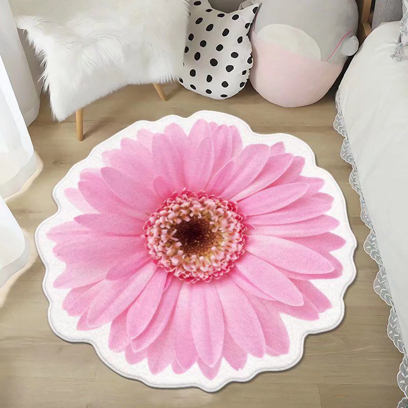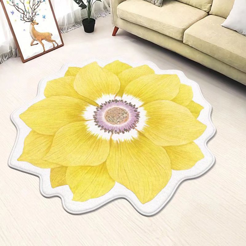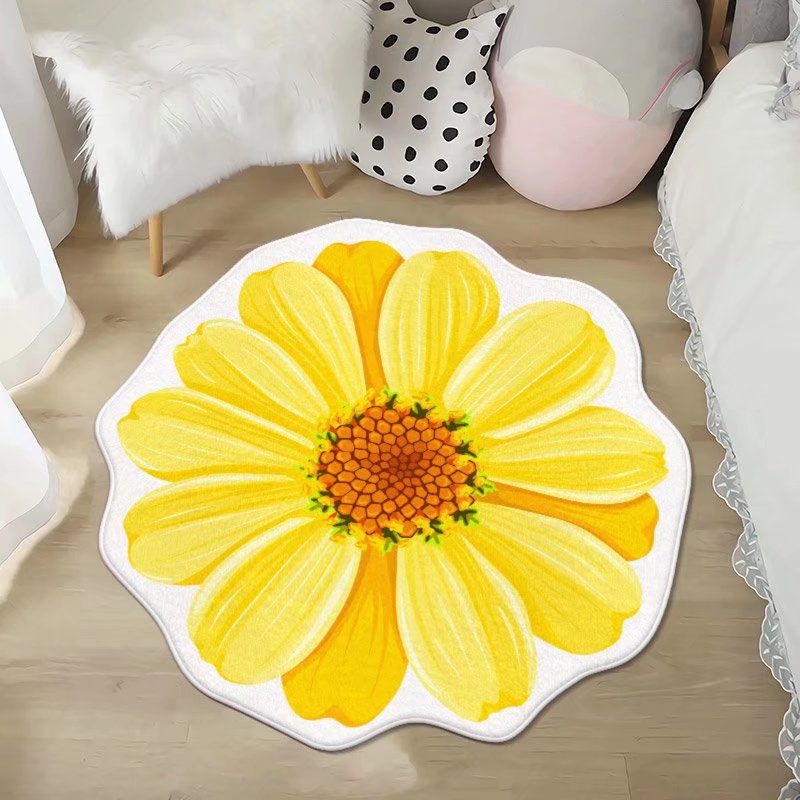 Yellow Casual Rug Polyester Flower Area Rug Non-Slip Backing Rug for Living Room