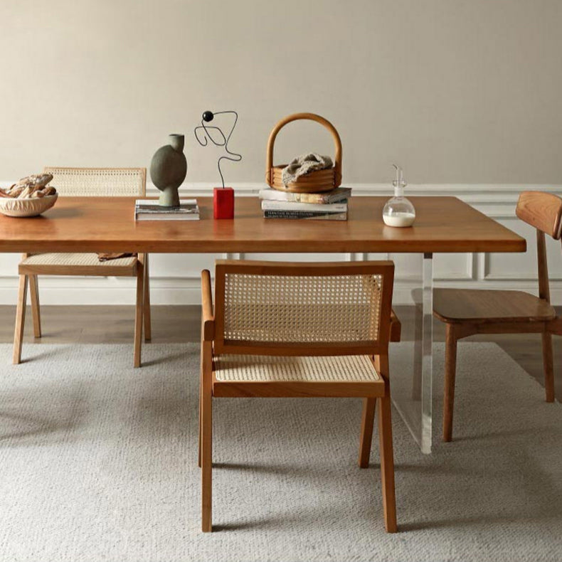 Contemporary Solid Wood Top and Acrylic Base Dining Table Set