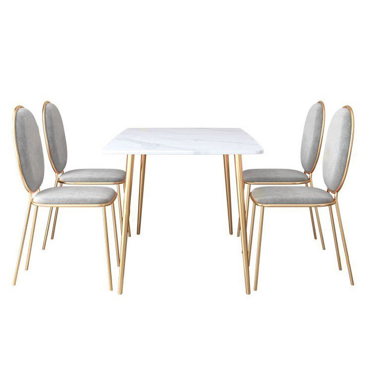 Designer Rectangle Dining Table Set 1/4/5/6/7 Pieces Gold Stone Top Dinette Set