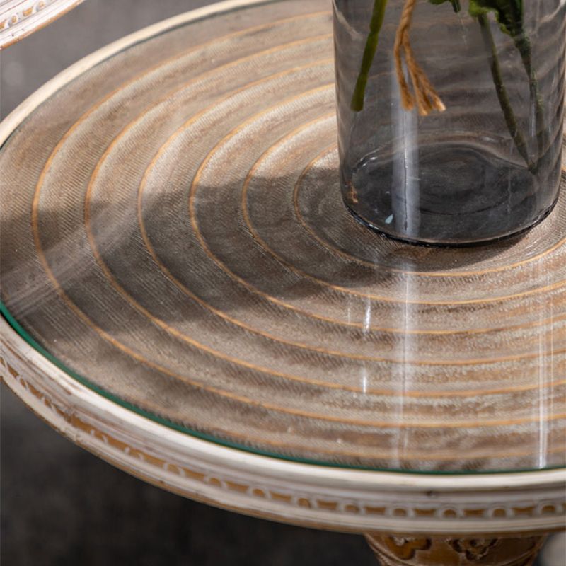 French Country 3 Legs Sofa Side Accent Table Solid Wood Round End Table