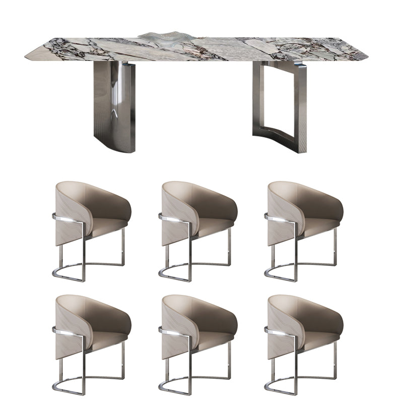 1/4/7 Pieces Rectangle Stone Top Stainless Steel Base Dining Set for Home