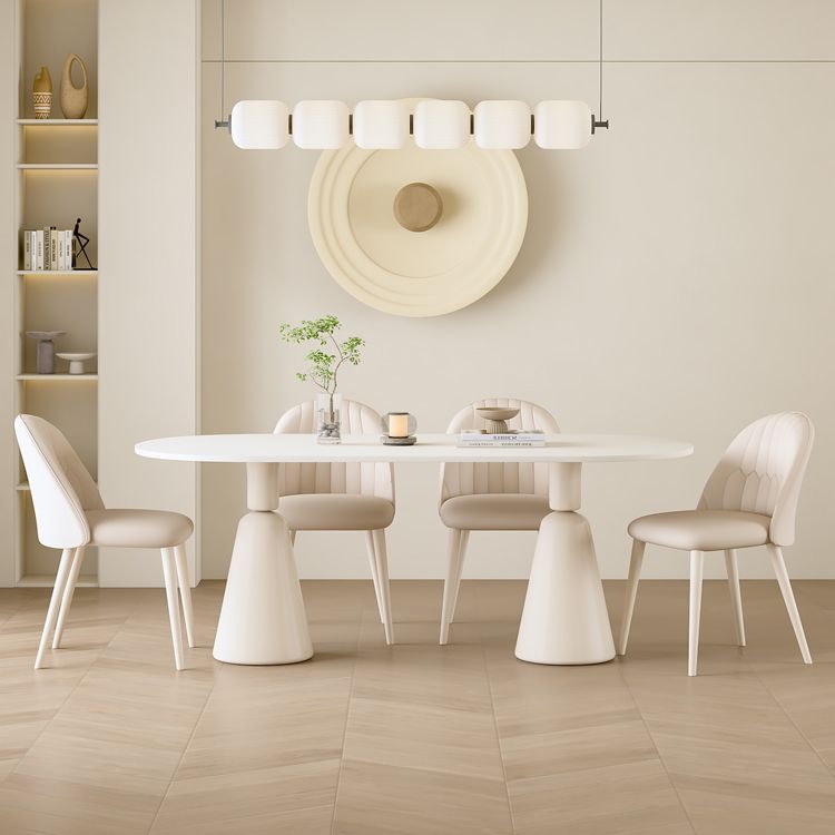 1/5 Piece Oval Shape Stone Top Dining Room Furniture Set in White
