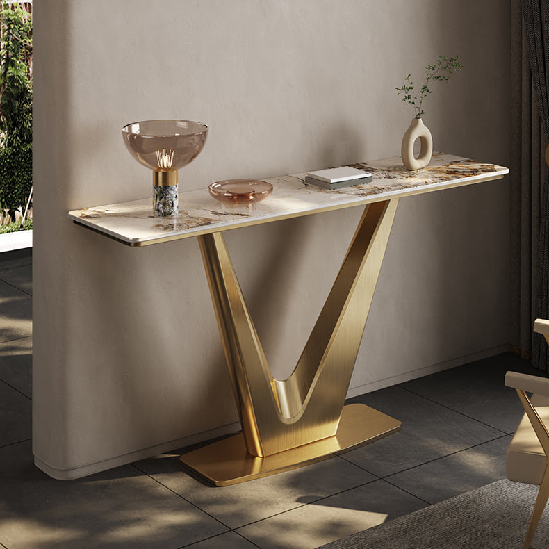 14 inch Wide Glam Console Table Stone Rectangle Accent Table for Hall