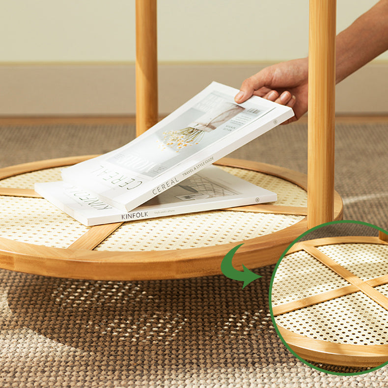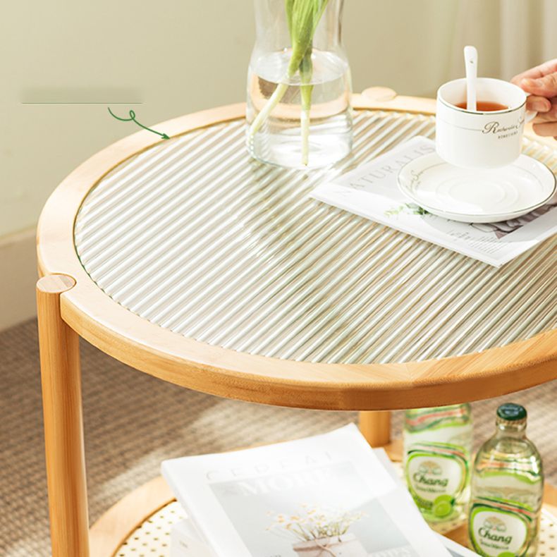 19.68" Tall Round Glass Top Side Table Wood 3 Legs End Table with Shelf