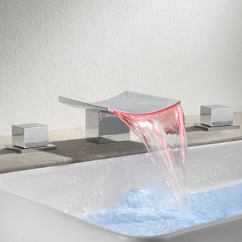 2-Handle Brushed Nickel Widespread Faucet 3 Hole Widespread Sink Faucet with LED Lighting