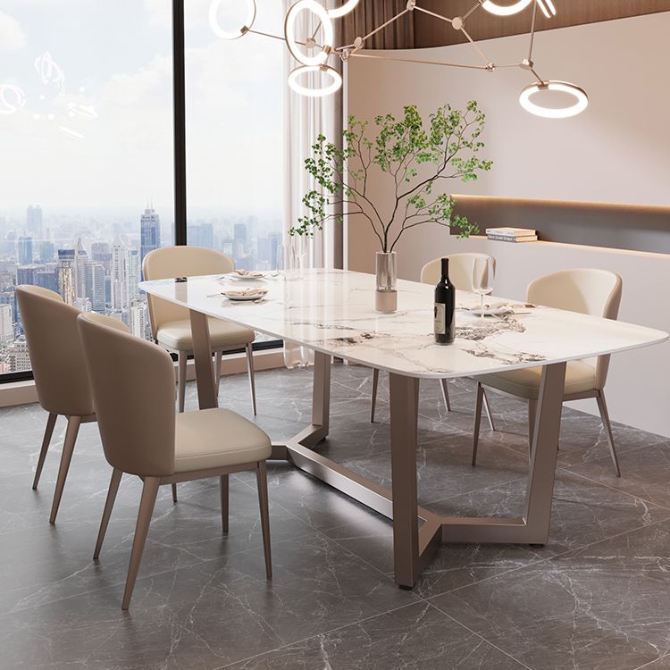 5/7 Pieces Glam Sintered Stone Top White Dining Set for Home