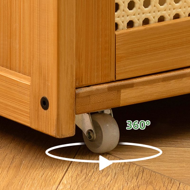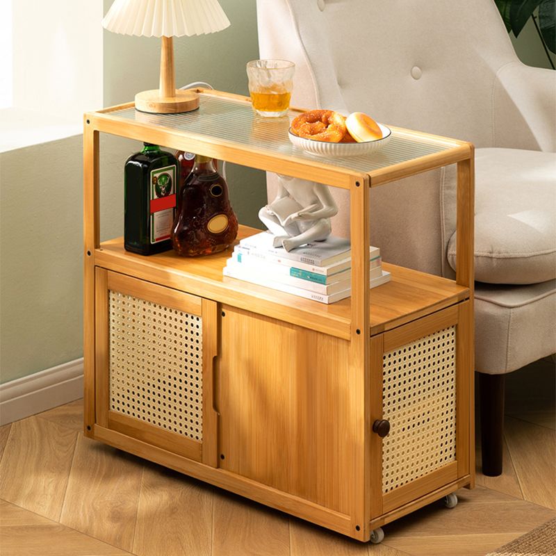 Asian Rectangular Side Table Glass Top End Table with Cabinet