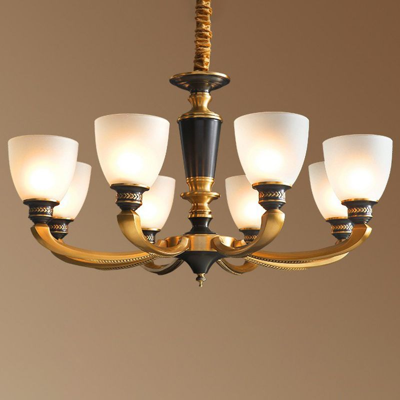 Black-Bronze Hanging Ceiling Light Traditional Frosted Glass Bell Chandelier for Living Room