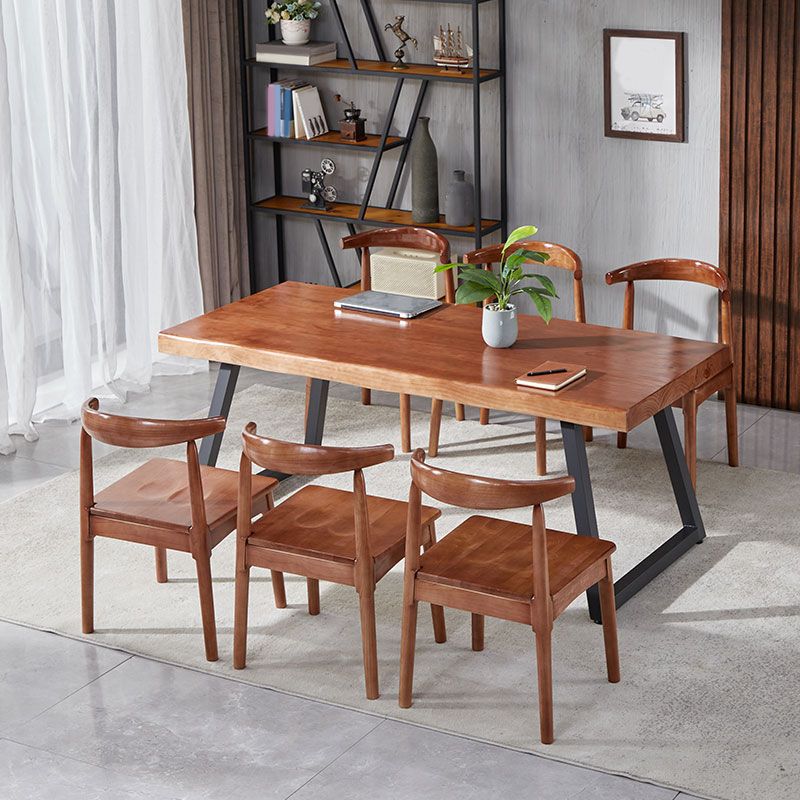 Brown Rectangular Dining Table Set 1/2/5/7 Pcs Solid Wood Dinette Set for Kitchen