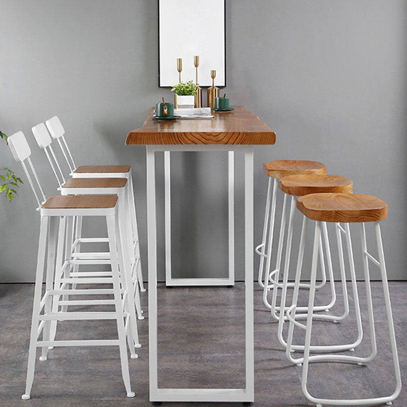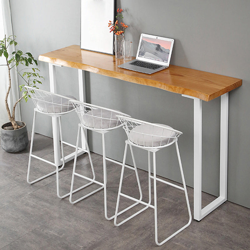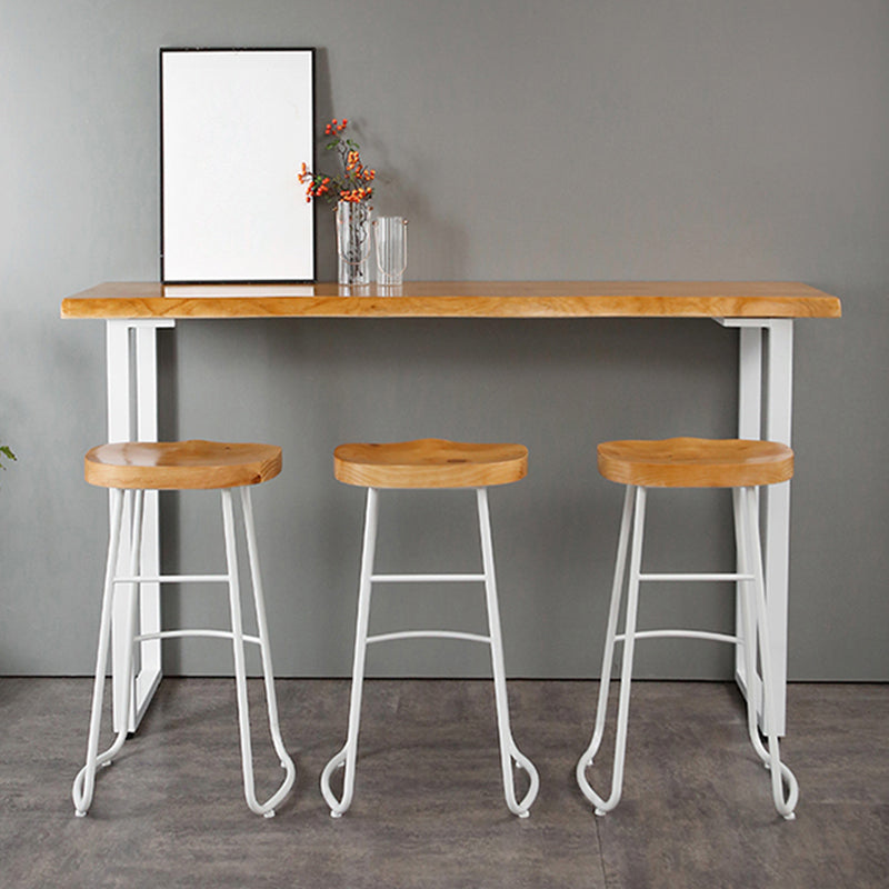 Contemporary Pub Table with Sled Rectangle Pine Wood Top Bar Table