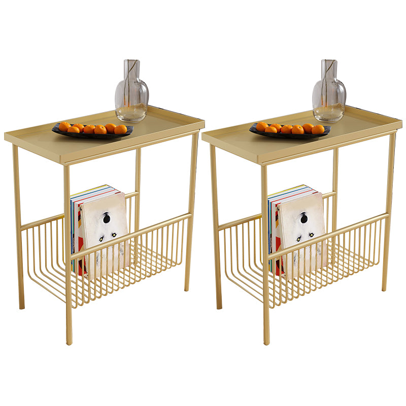 Contemporary Rectangular Side Table Metal 4 Legs End Table with Shelf