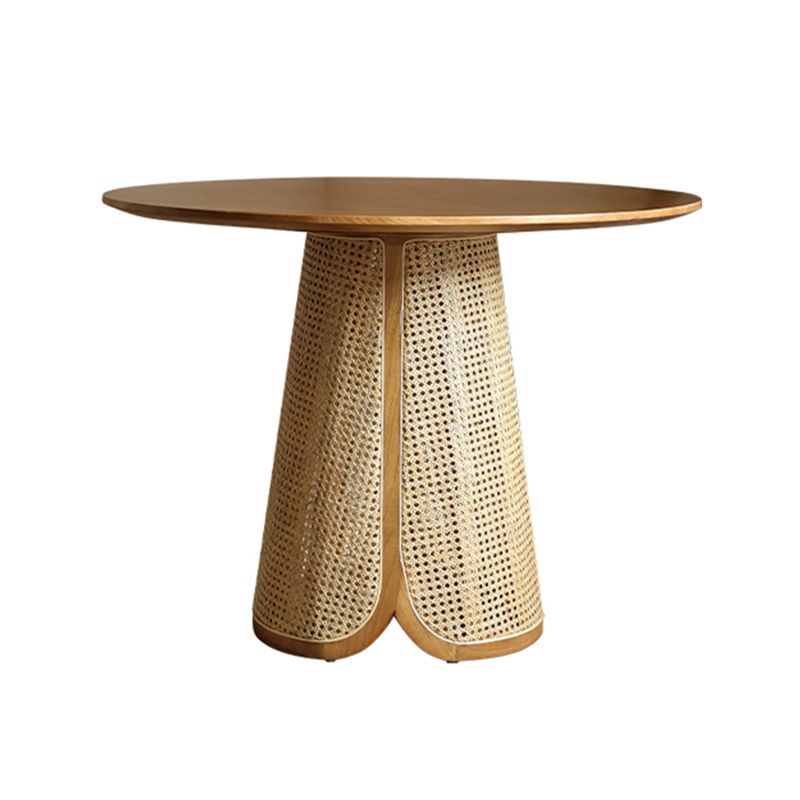 Contemporary Solid Wood Top Pedestal Dining Table Set for Home