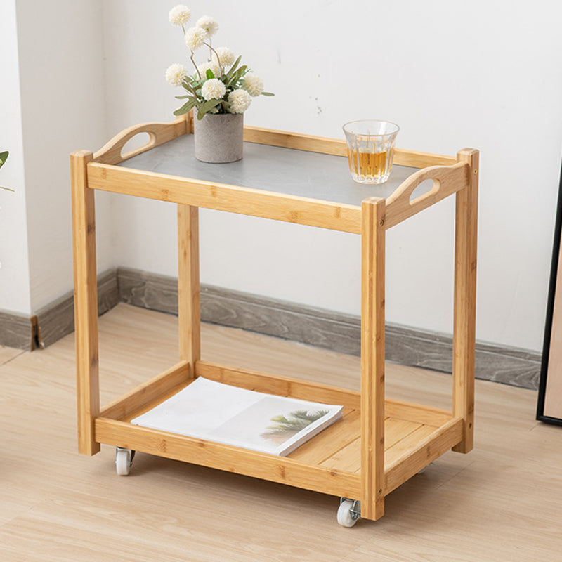 Contemporary Solid Wood with Shelf Rectangular Double Tier Side Table