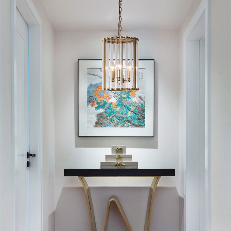Cylindrical Clear Glass Pendant Chandelier Colonial 3 Bulbs Corridor Hanging Light