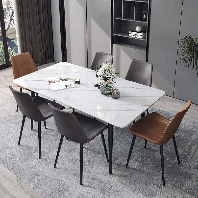 Designer Style White Dining Table Set 1/4/5/7 Pieces Stone and Metal Dinette Set