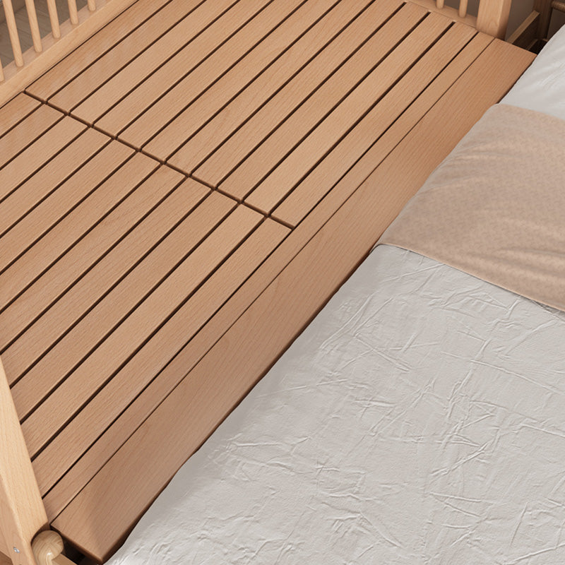 Farmhouse Style Beech Crib Solid Wood Nursery Crib with Guardrails