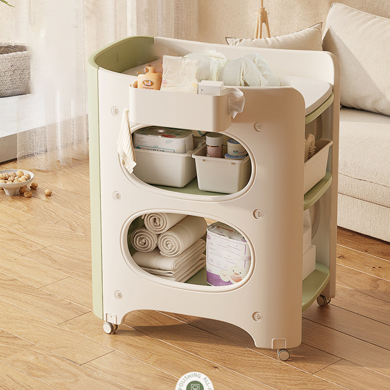 Flat Top Changing Table Plastic Changing Table with Safety Rails and Shelf