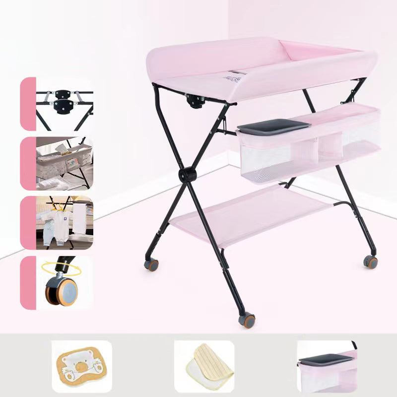 Folding Baby Changing Table Basket Portable Changing Table with Pad