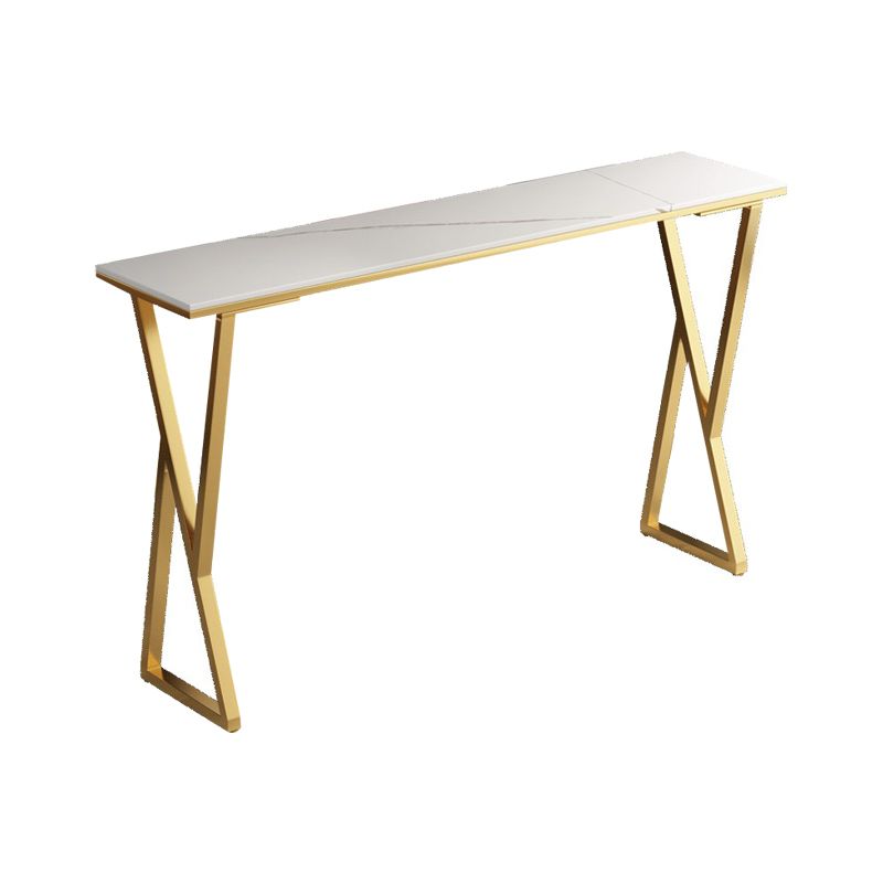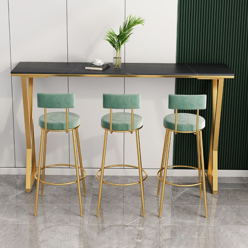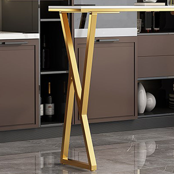 Glam Bistro Table with Gold Metal Base Rectangle Stone Top Bar Table