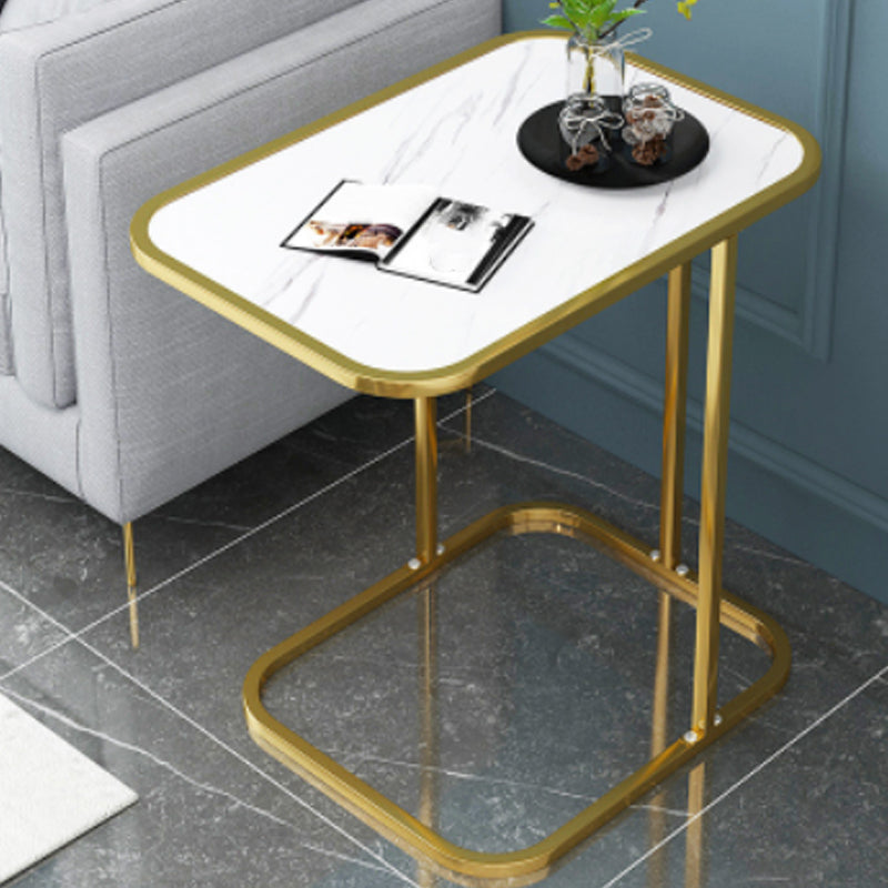 Glam Black/White Wood Side Table Stainless Steel Frame End Table