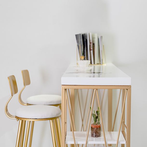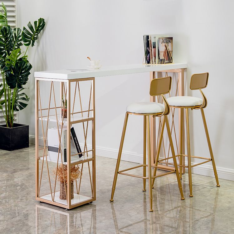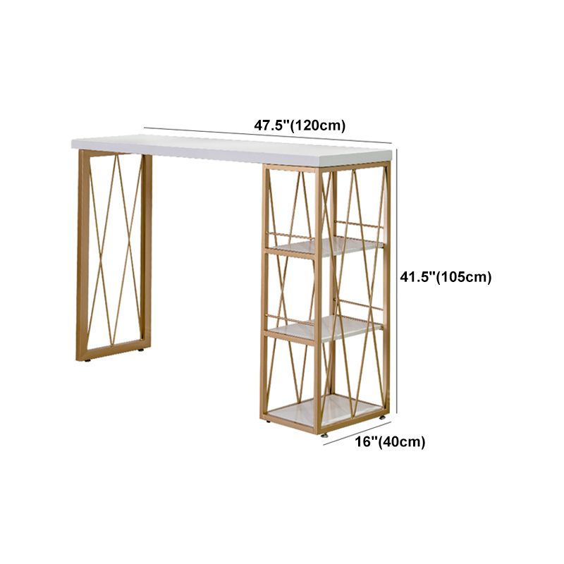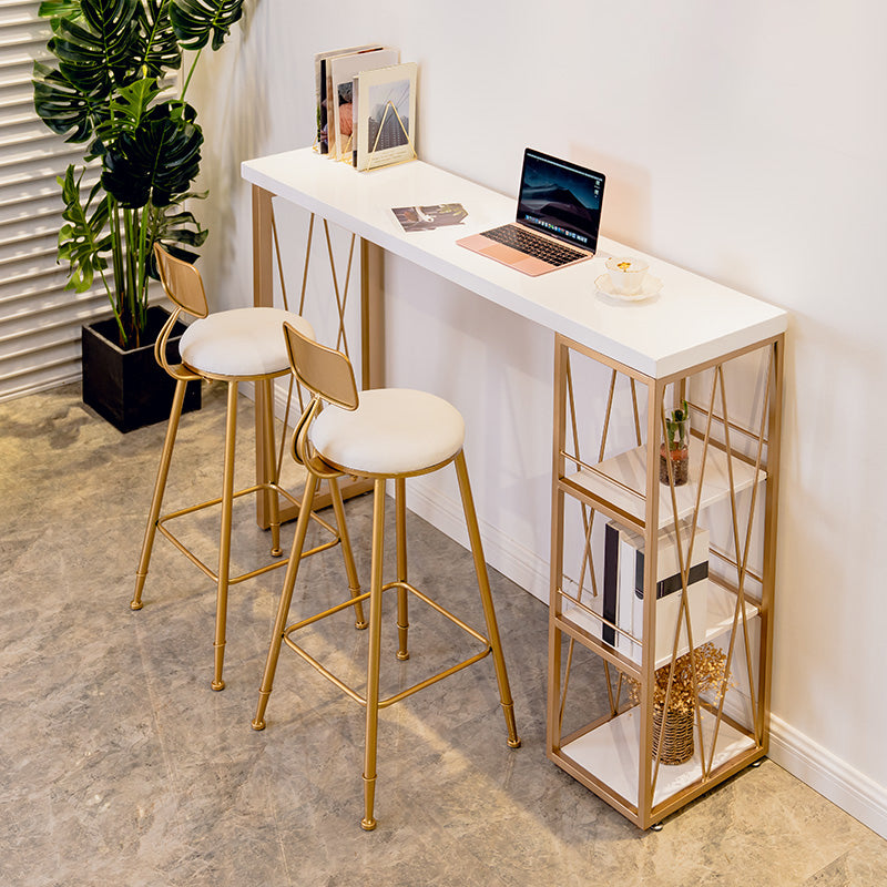 Glam Gold Metal Frame Pub Table for Small Places White Rectangle Bar Table