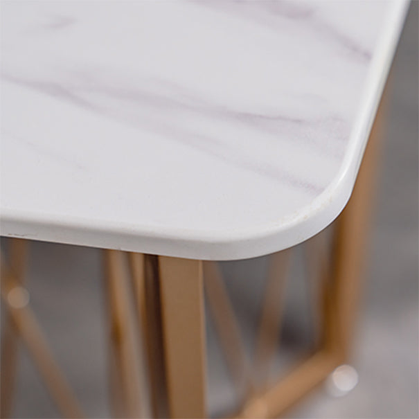 Glam Marble Top Dinette Set 1/2/5/6/7 Pieces White Rectangle Dining Table Set