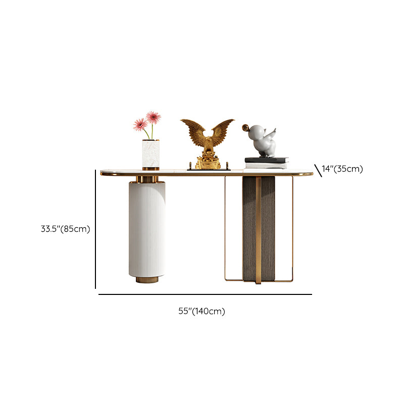 Glam Oval Console Table Stone White Console Sofa Table for Hall