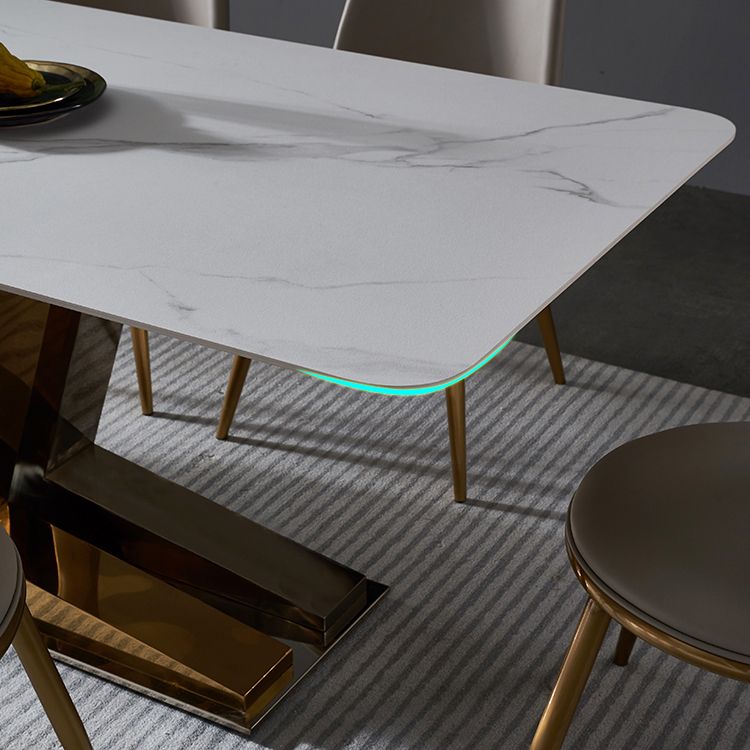 Glam Rectangle Dinette Set 1/4/5/7 Pieces Dining Table Set with White Sintered Stone Top