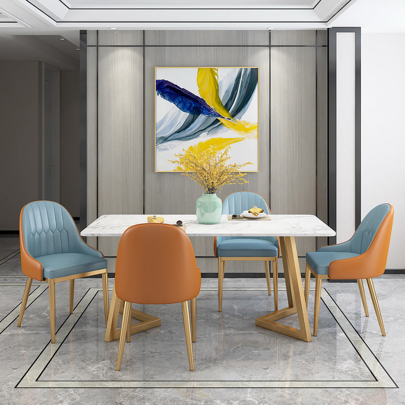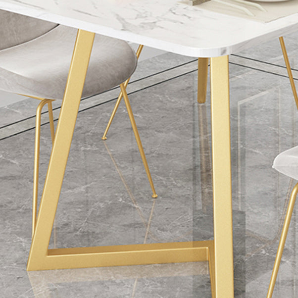 Glam Rectangle Dining Table Set 1/4/5 Pieces White Stone Top Dinette Set