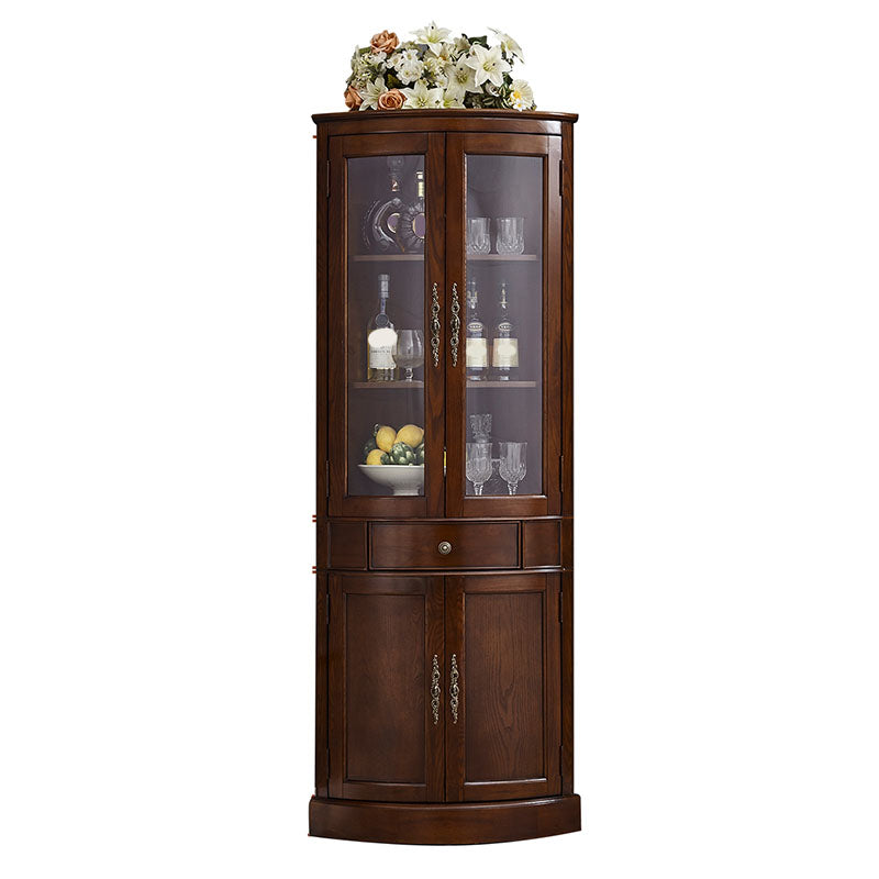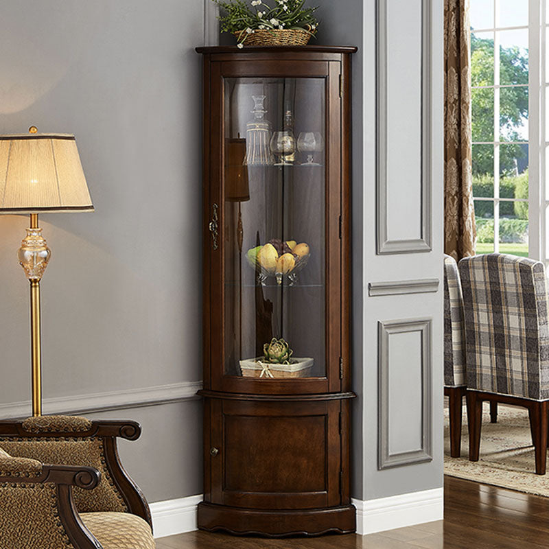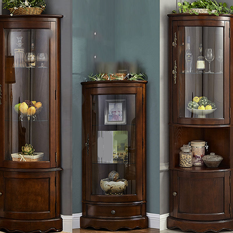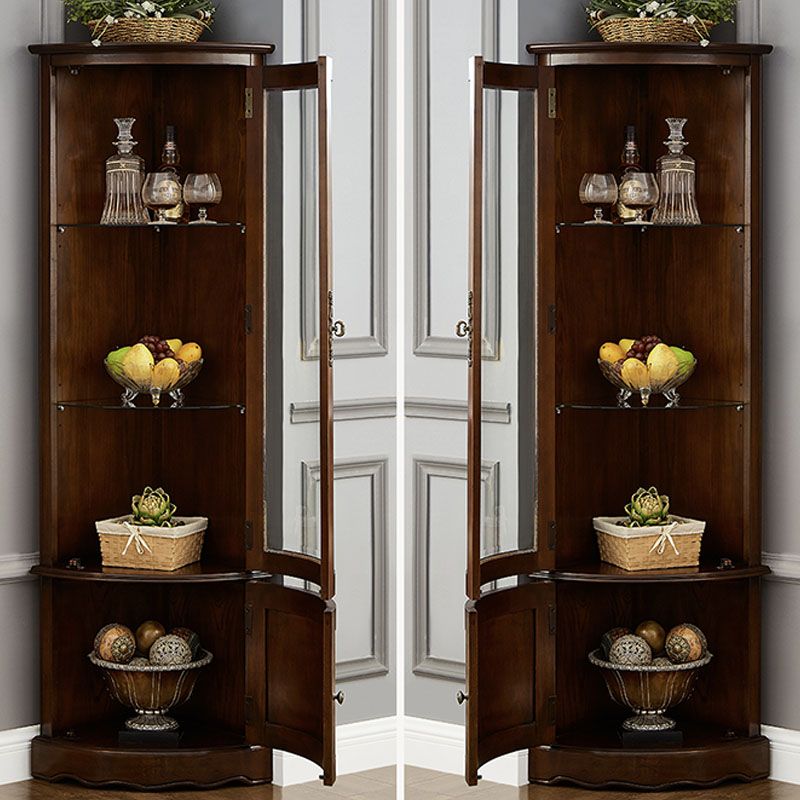 Glass Paned Solid Wood Corner Rustic Accent Cabinet with Doors