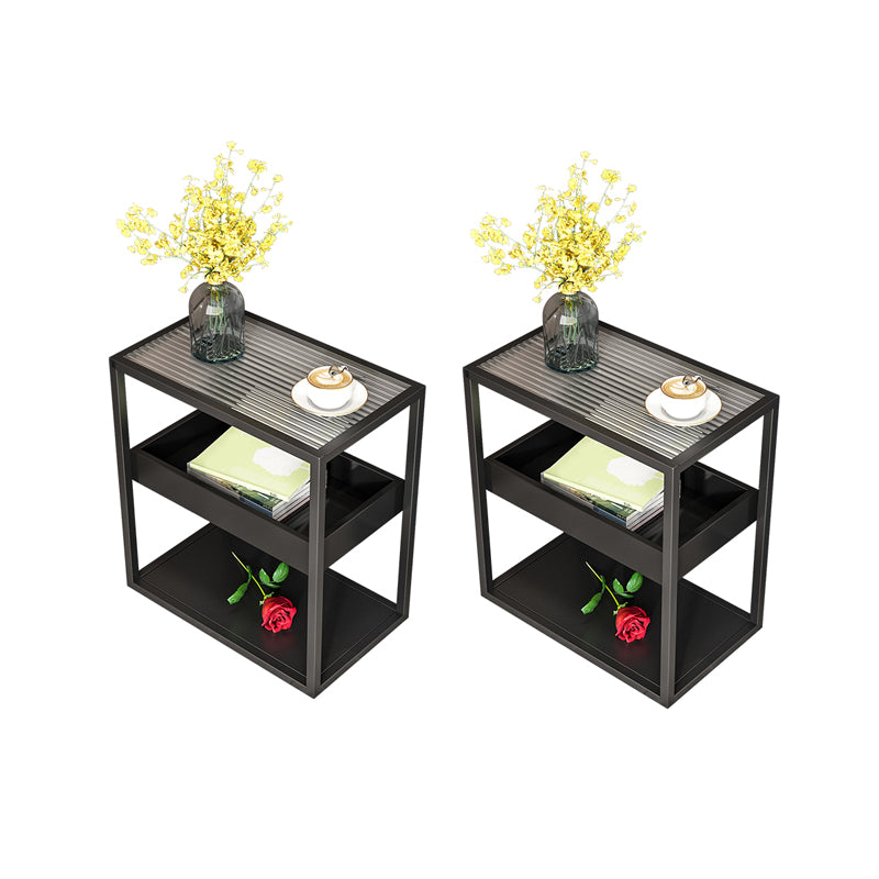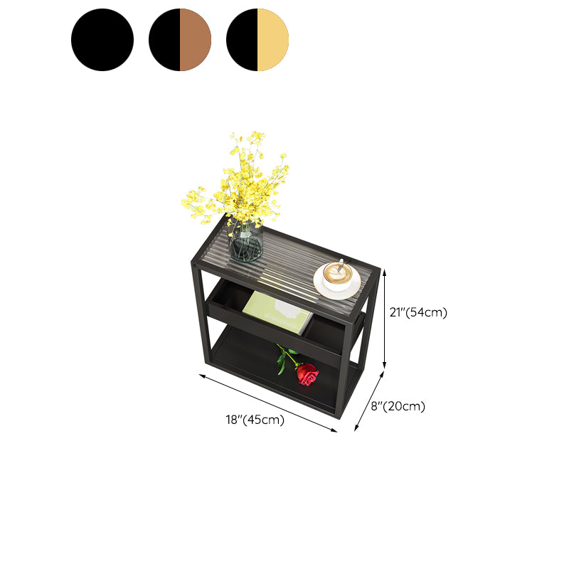 Glass Top Sofa Side Accent Table 21.25" High Frame End Table with Shelves