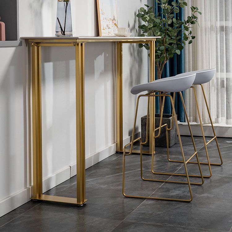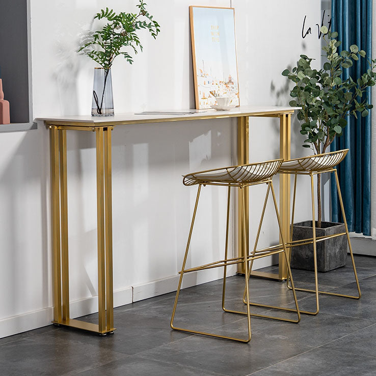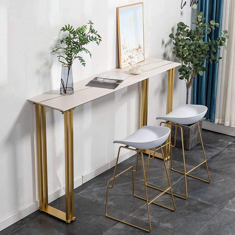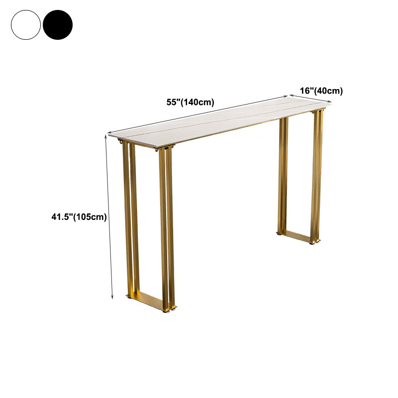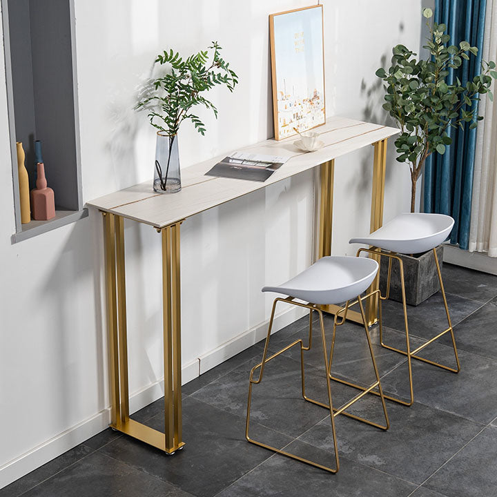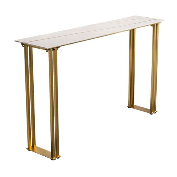 Indoor Rectangle Sled Event and Cocktail Table Glam Stone and Metal Counter Table
