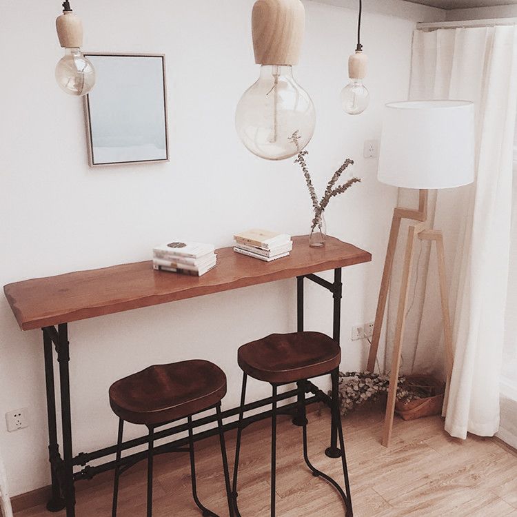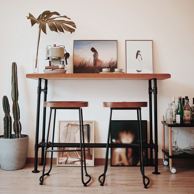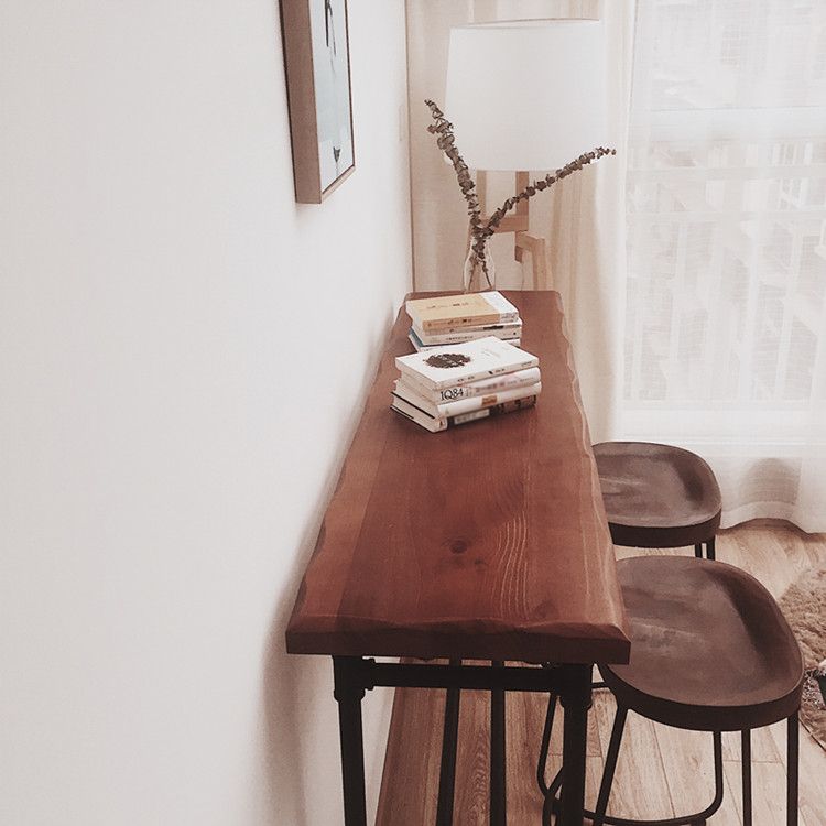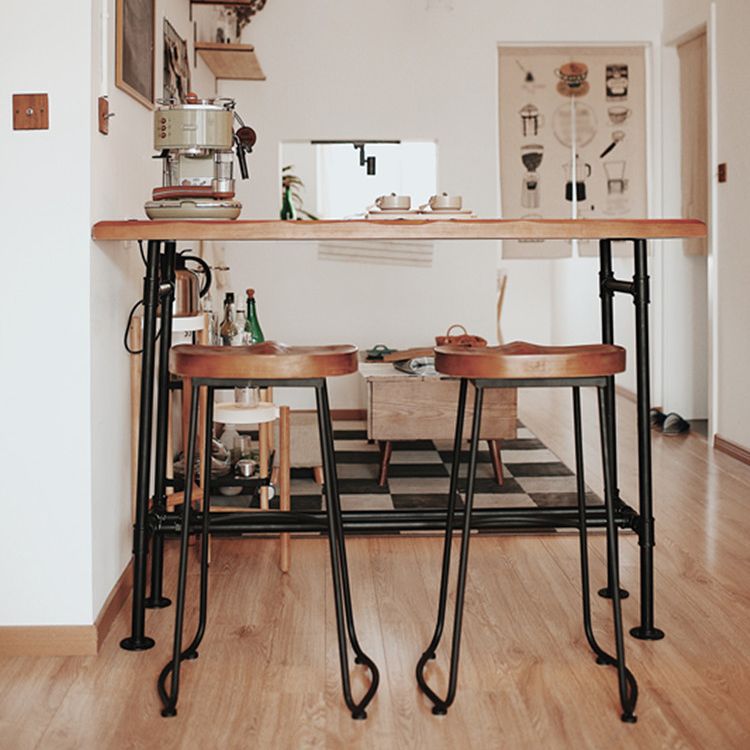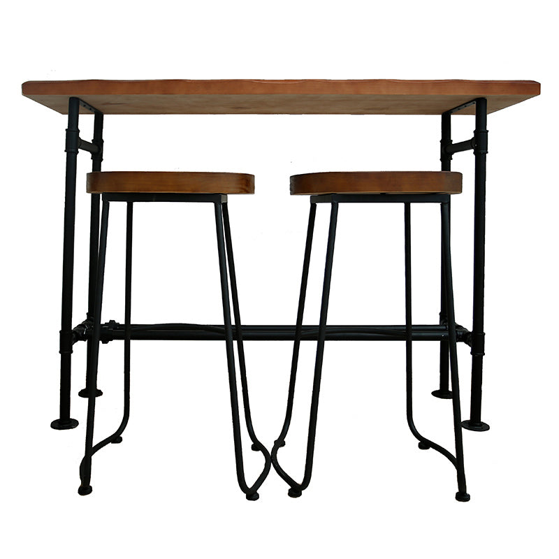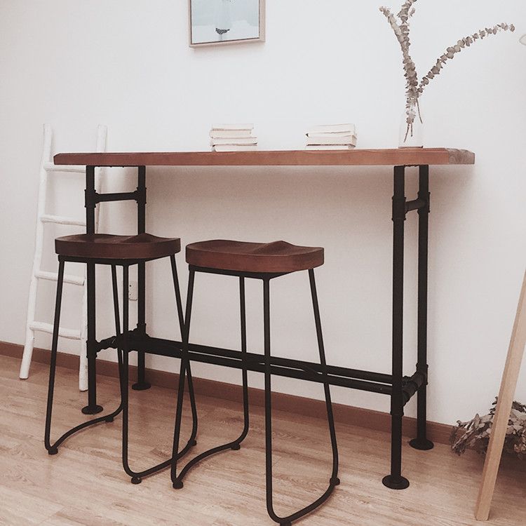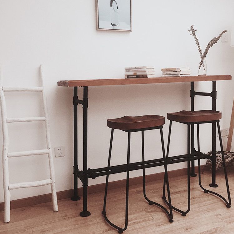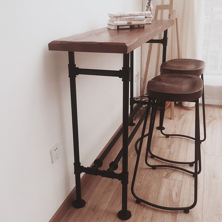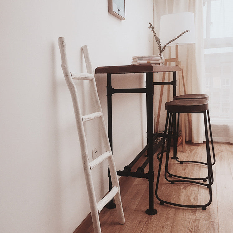 Indoor Solid Wood Trestle Cocktail Bar Table Industrial Footrest Pub Height Dining Table